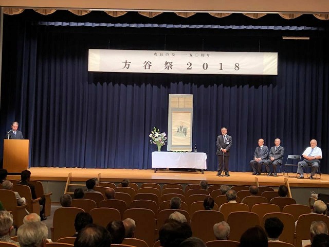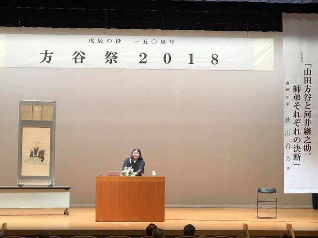 急いで高梁市まで帰って、13時30分から「高梁市文化交流館」で開催された『戊辰の役150周年方谷祭2018』に出席しました。記念講演は、「山田方谷と河井継之助、師弟それぞれの決断」。講師は作家の秋山香乃氏でした。