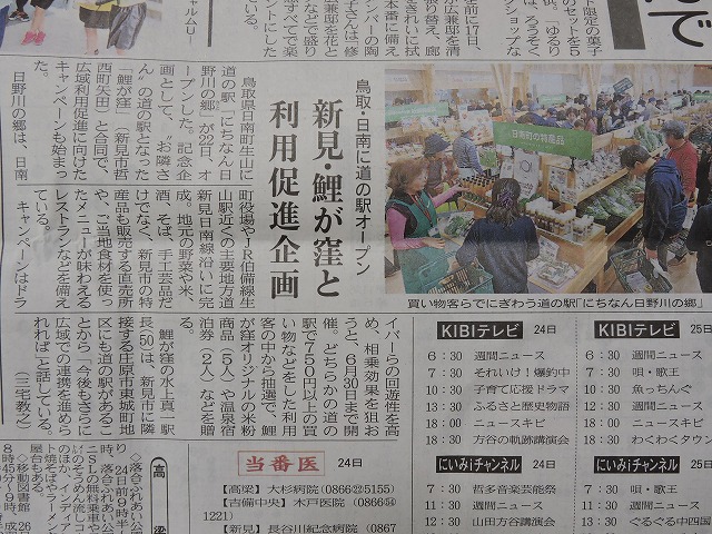 昨日視察させて頂いた『にちなん日野川の郷「道の駅」』の関連記事です。広域連携の主動力的な役割を果たしているな。『道の駅・鯉が窪』の水上駅長、さすがです。