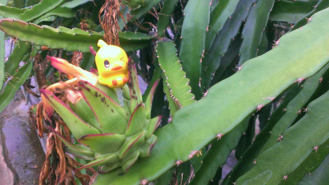 続いて、岡山市北区御津吉尾の(有)スコレーを訪問し、ドラゴンフルーツやぶどう、洋ランの栽培を視察しました。6次産業化事業計画認定の「ドラゴンフルーツを活用した新商品開発」について説明をしていただきました。