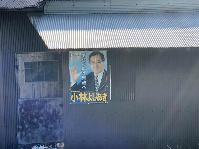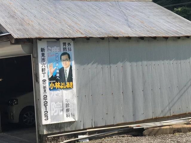 県道大佐日野線を視察しました。ポスター掲示、ありがとうございます。