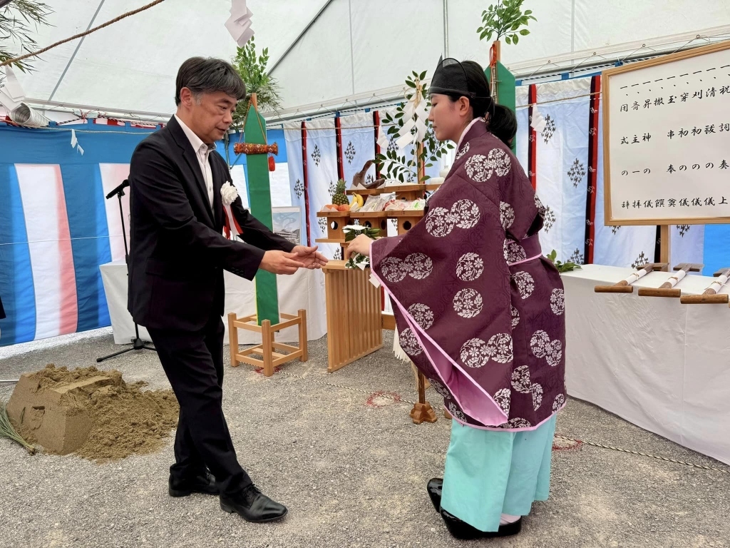 「新見市役所本庁舎附属棟建設工事安全祈願祭」です。よろしくお願いします。