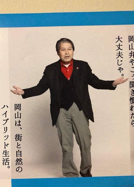 急いで岡山市内へ移動して、某ホテルのラウンジで「仲睦まじい先輩後輩」のお二人と合流して、しばらく茶話会。それから岡山県庁へ入り、ご挨拶等々。3階と8階と5階と、それから・・・。途中、面白いポスター発見。おやおや、左上に新見の紳士がおりますなぁ。このポスター、新見の事務所に貼りたいなぁ。