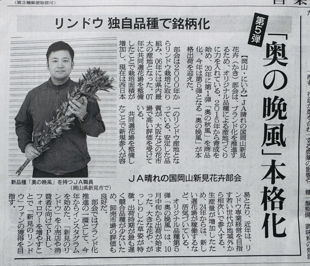 今朝の「日本農業新聞」から。新見は西日本一のリンドウ産地です。