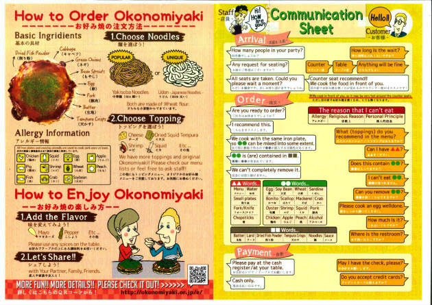 一般社団法人お好み焼きアカデミー(広島市)が、お好み焼きの注文の仕方や食べ方を英語で紹介したガイドを作成したそうだ。