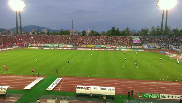 19時から岡山市の「カンコースタジアム」で開催されたファジアーノの試合を観戦しました。新見市から107名の応援団が駆けつけました。対戦相手はガンバでした。試合は2対3で敗れましたが、立派な戦いでした。18000人を超す観客で、スタジアムは満員御礼。観客数新記録とのこと。