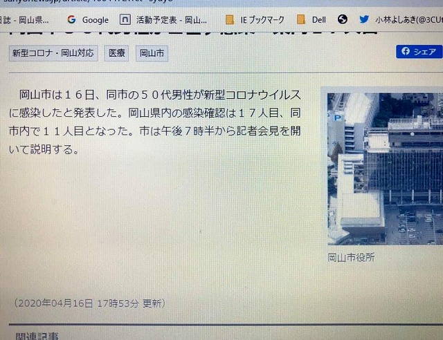 岡山県下で17例目の新型コロナウイルス感染が確認されました。ご注意願います。