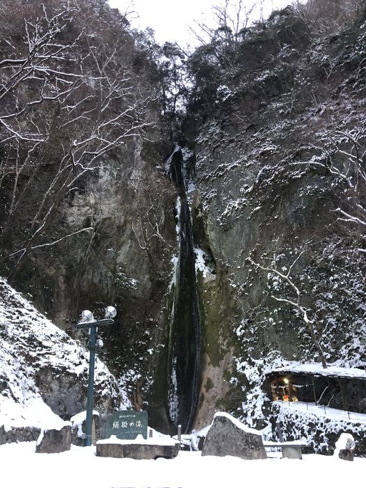 国道180号、凍りついて、怖い怖い。絹掛の滝までやって来たところで、一休みです。