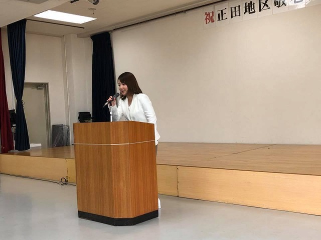 続いて、「正田ふれあいセンター」で開催された『平成30年度正田地区敬老会』に出席しました。おめでとうございました。一言ご挨拶の機会を頂きました。ありがとうございます。