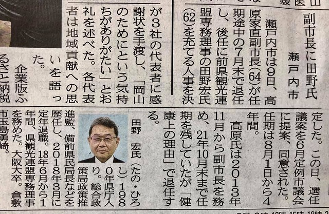 田野さん、副市長ご就任おめでとうございます。新見市の副市長、よろしくお願いします。