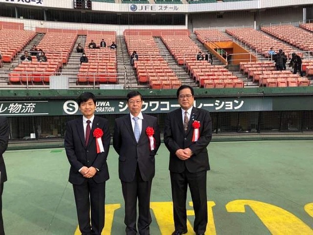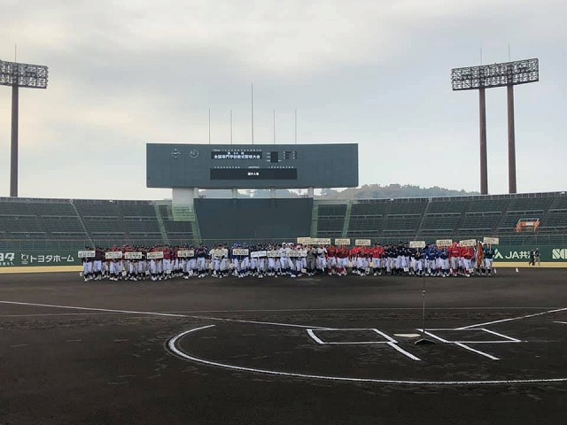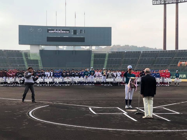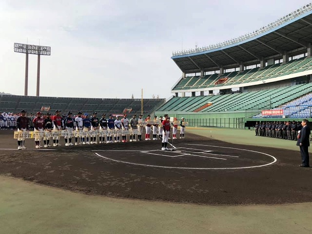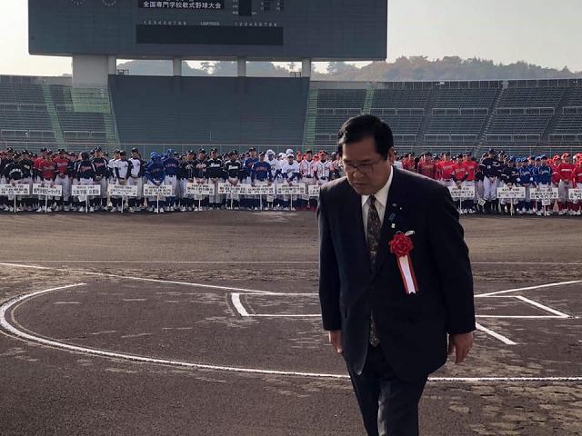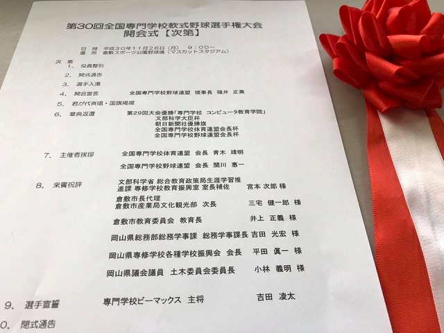 9時から、「マスカットスタジアム」で開催された『第30回全国専門学校軟式野球選手権大会開会式』に出席しました。一言、お祝いと歓迎のご挨拶を申し上げました。各地区の予選を勝ち抜いた精鋭20チームの選手諸君、頑張ってください。