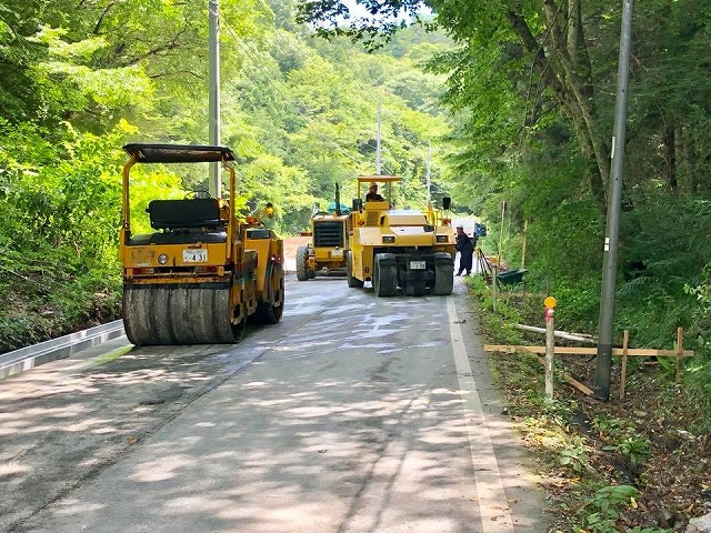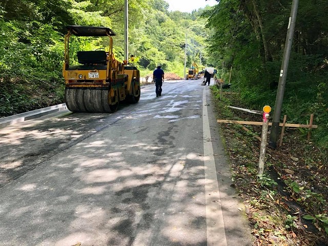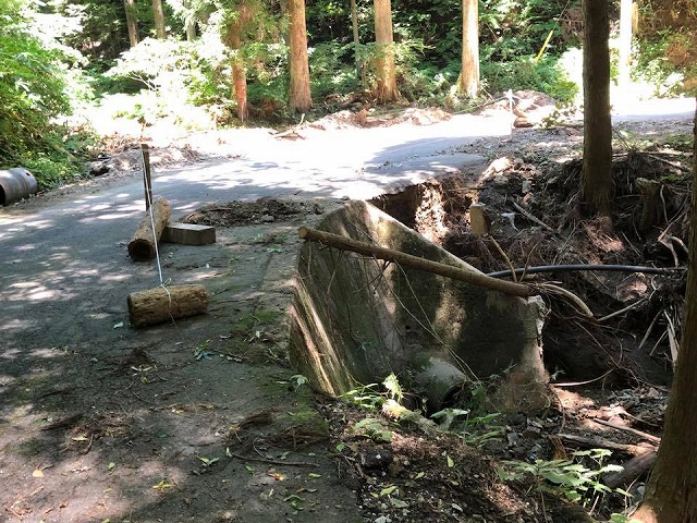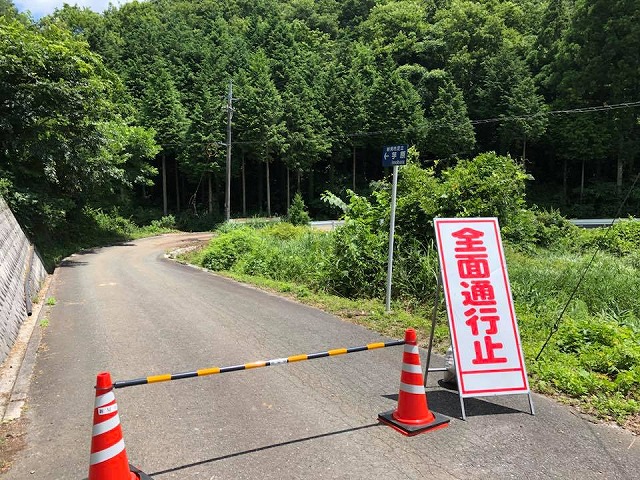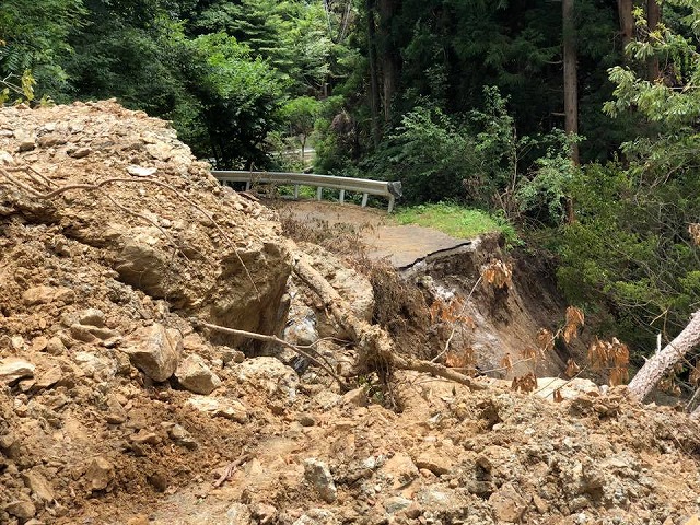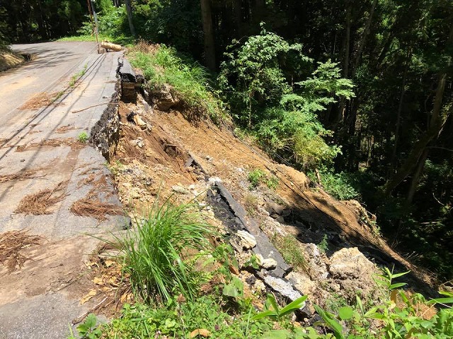 続いて、情報を頂いた足立吉川地区を視察しました。芋原方面土砂崩れで遮断されていますので、足立方面から入りました。この市道一本ですので、路肩の小さな崩壊個所が気になりました。