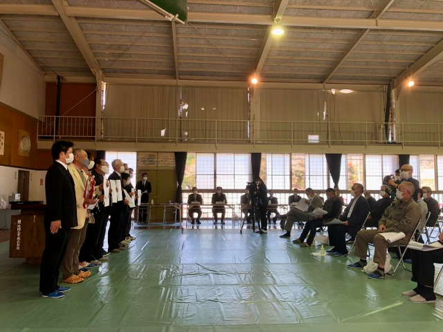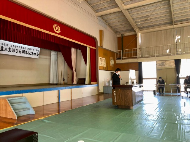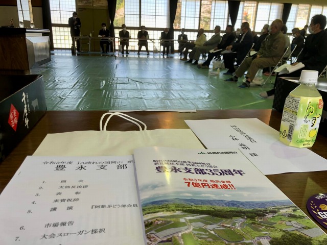 10時から「旧豊永小学校体育館」で開催された「JA晴れの国阿新ぶどう部会豊永支部35周年記念大会~令和3年販売金額7億円達成!~」に出席しました。おめでとうございます。一言ご挨拶の機会を頂きました。ありがとうございました。今後ともしっかりとお支えしてまいります。