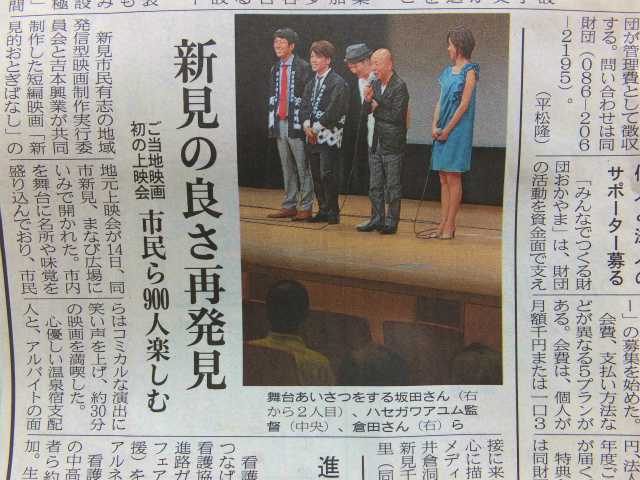 地域発信型映画の上映会の次の日、新見は激しい雨となった。大きな災害がなくてよかった。