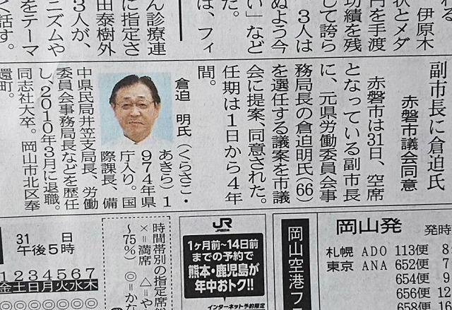てころで、赤磐市副市長に就任することになった倉迫さんは新見市出身。新見市と赤磐市との人の行き来。実に面白い。