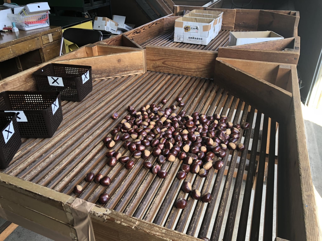 喜び勇んで、予約しておいた「幻の哲西栗」を受け取りに「組合集荷場」へ出かけた。「悪いですなぁ。今日はこれだけですわ。」「開店休業です。待ってもらうしかないです。」とのこと。今年は栗が大凶作とお聞きしました。文字通り「幻の哲西栗」であります。