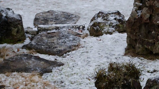 暖かいのでしょう。雪が雨に変わった我が家周辺です。それでも明け方は、うっすら雪化粧となりました。本日もよろしくお願いします。