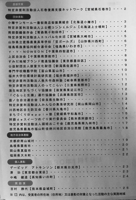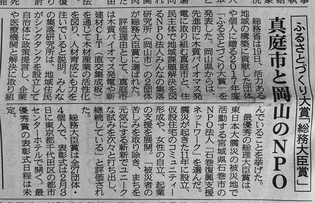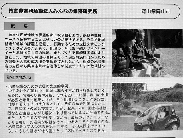 総務大臣賞、真庭の太田市長、NPO法人みんなの集落研究所の石原代表執行役、おめでとうございます。