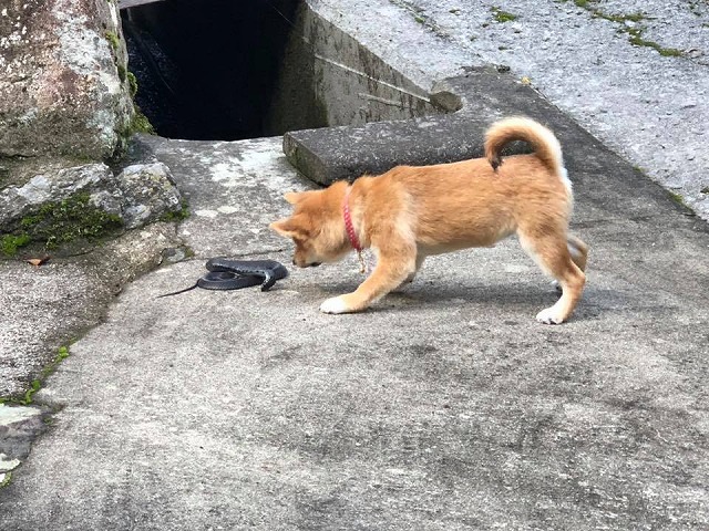 「朝のお散歩」、小林ふく大はしゃぎ。近所のおっちゃん出没するは、ヘビに挑むは、元気いっぱいなのだ。本日もよろしくお願いします。頑張りましょう。
