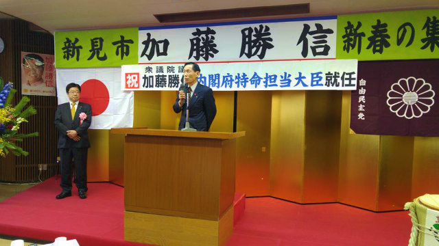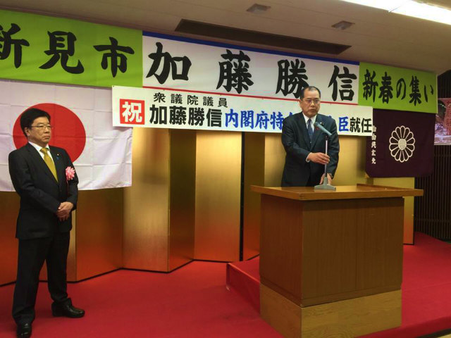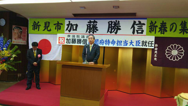 10時から「JA阿新会館」で開催された『新見市加藤勝信新春のつどい』に出席しました。厳しい冷え込みの中、会場は多くの皆様で熱気ムンムンです。