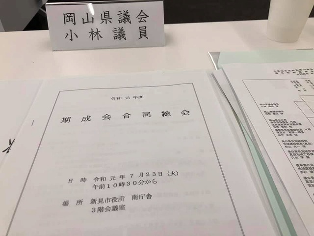 10時30分から、「新見市役所南庁舎」で開催された『主要地方道新見勝山線整備促進期成会・備北新線整備促進期成会令和元年度期成会合同総会』に真庭市の河野けいじ県議と共に出席し、一言ご挨拶を申し上げました。おめでとうございました。