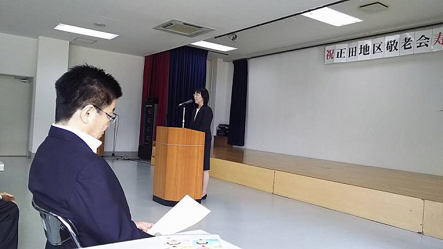 続いて、「正田ふれあいセンター」で開催されている『平成29年度正田地区敬老会』に出席しました。敬老会、おめでとうございました。遅れての出席でありましたが、ご挨拶の機会を頂きました。ありがとうございました。加藤勝信大臣もご出席下さいました。