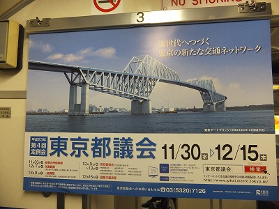 モノレールに乗りましたら、『東京都議会』広報してありましたです。