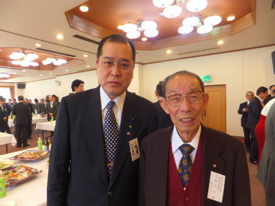 会場で坂口新見市議と記念写真。お年を訊ねると『米寿じゃ』との