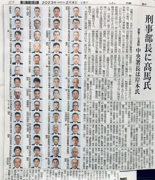 異動の季節ですね。山陽新聞です。