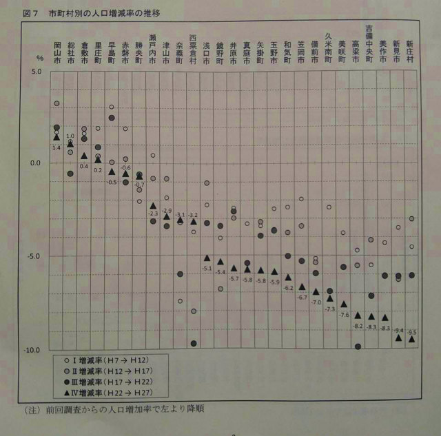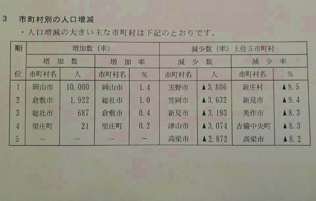 ところで、我がふるさと新見市はどうだろう。漠然と予想はされたものの、改めて厳しい数値となった。人口総数3万677人で、前回の平成22年国勢調査人口総数に比べ、3,193人(9.4%)の減少となった。