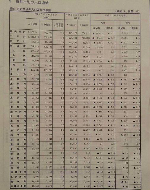 「平成27年国勢調査結果速報資料」を届けていただいた。
