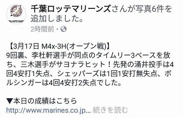 プロ野球のロッテに入団した李選手が頑張っている。加油!