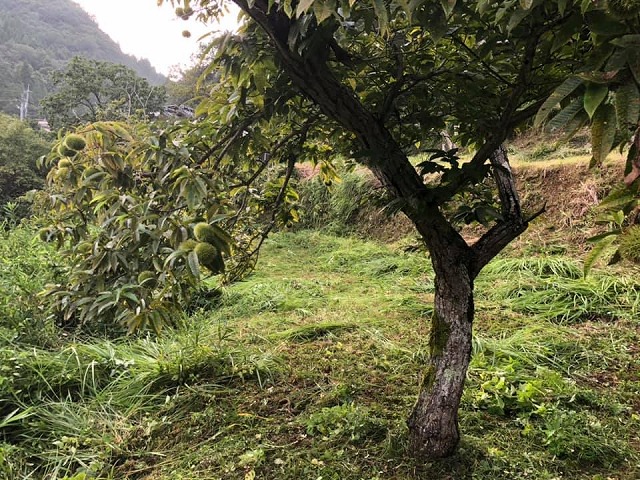 本日2回目の「草刈り」です。力技になってしまった。その分、疲れた。反省。栗が大きくなっていた。