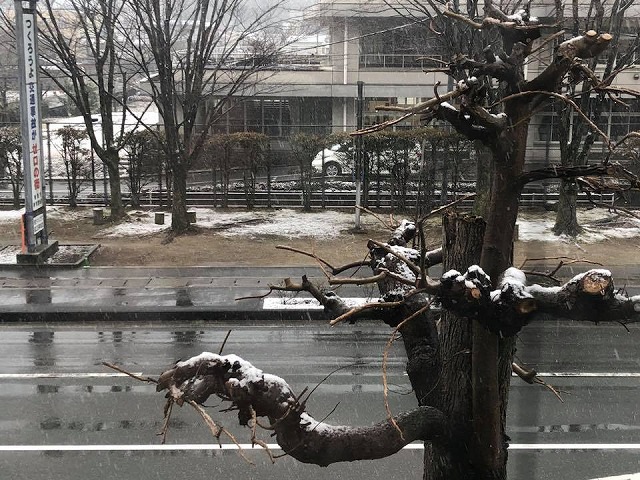 今日は、政務事務所と自宅を行ったり来たり。雪が積もり始めました。