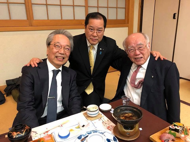 県医師会長の石川先生と新見公立大学長の公文先生と。温情と知性、素晴らしいなぁ。石川先生には県医療の推進に大変お世話になっています。公文先生は今や新見市の知恵袋です。