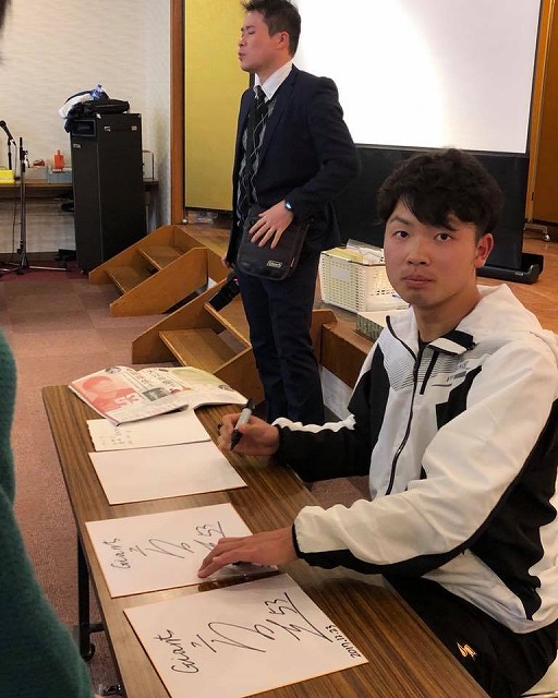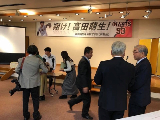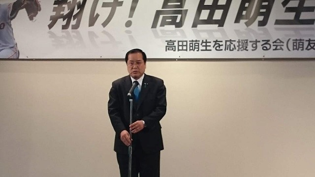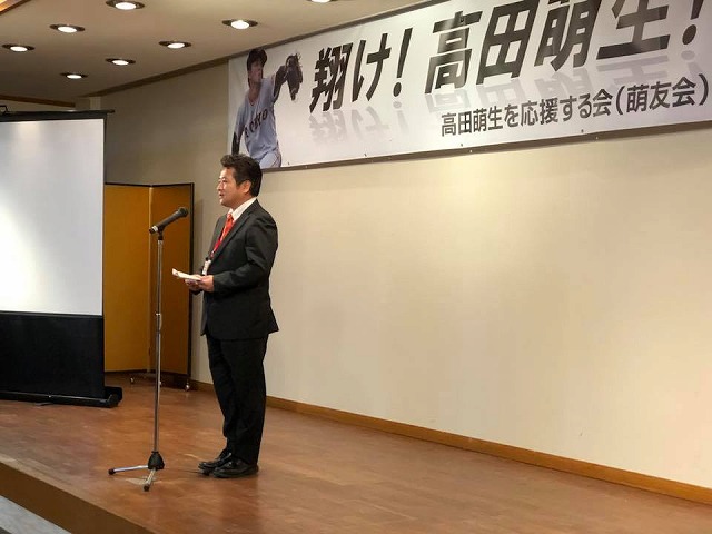 18時から、「新見商工会議所会館』で開催された『プロ野球読売ジャイアンツの高田萌生選手を励ますファンの集い』に出席しました。新見出身の高田選手を応援する市民の皆様が多数ご出席でした。