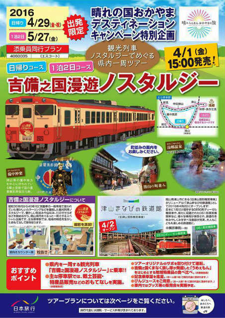 JR西日本の『晴れの国おかやまディストネーションキャンペーン』、5月27日に観光列車ノスタルジーが新見駅にやってくるよ!新見をPRにでかけよう~!