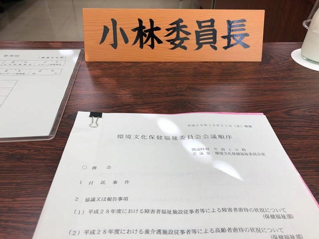 9時から『委員長レク』。10時から、県議会『環境文化保健福祉委員会』を開会。付託事件を省略して協議又は報告事項に入りました。