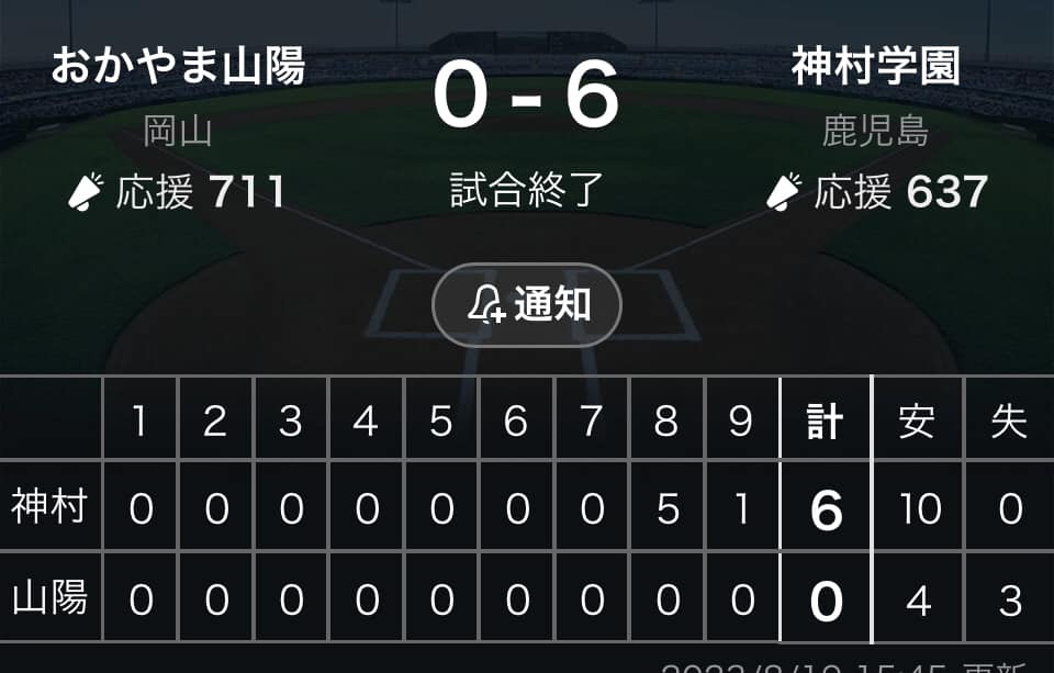 いい夏をありがとう。よう頑張った。今は悔しいだろうが、君たちは立派だ。おかやま山陽高校の息子たち。
