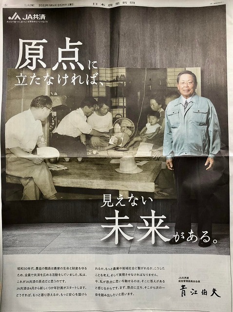 全面広告です。岡山県は矢掛町ご出身の青江氏であります。偉くなったなぁ。