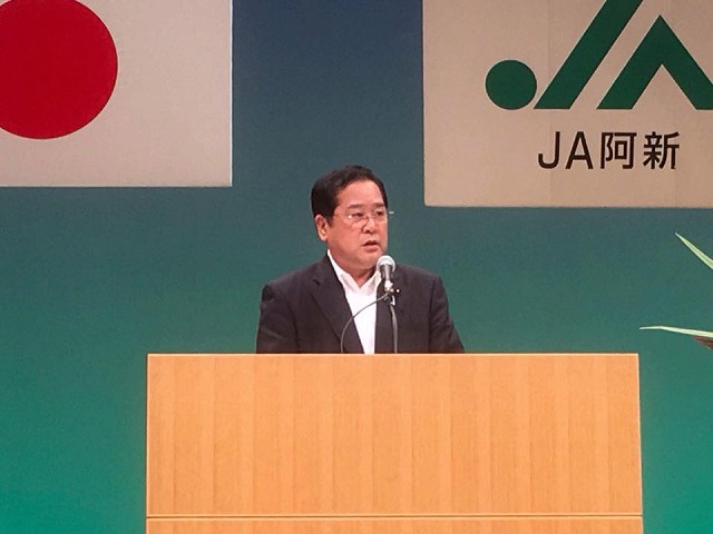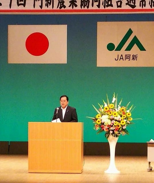 9時から、「まなび広場にいみ」で開催された『第47回阿新農業協同組合通常総代会』に出席しました。一言ご挨拶の機会を頂きました。祝辞を用意しておりましたが、山本組合長の力強いご挨拶に誘発されて、スピーチに切り替えました。共に頑張って参りましょう。