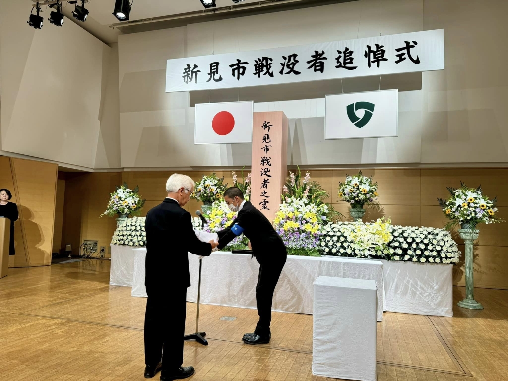 10時から、「まなび広場にいみ小ホール」で開催された「令和6年度新見市戦没者追悼式」に出席しました。地元県議会議員として、追悼の言葉を申し上げました。
