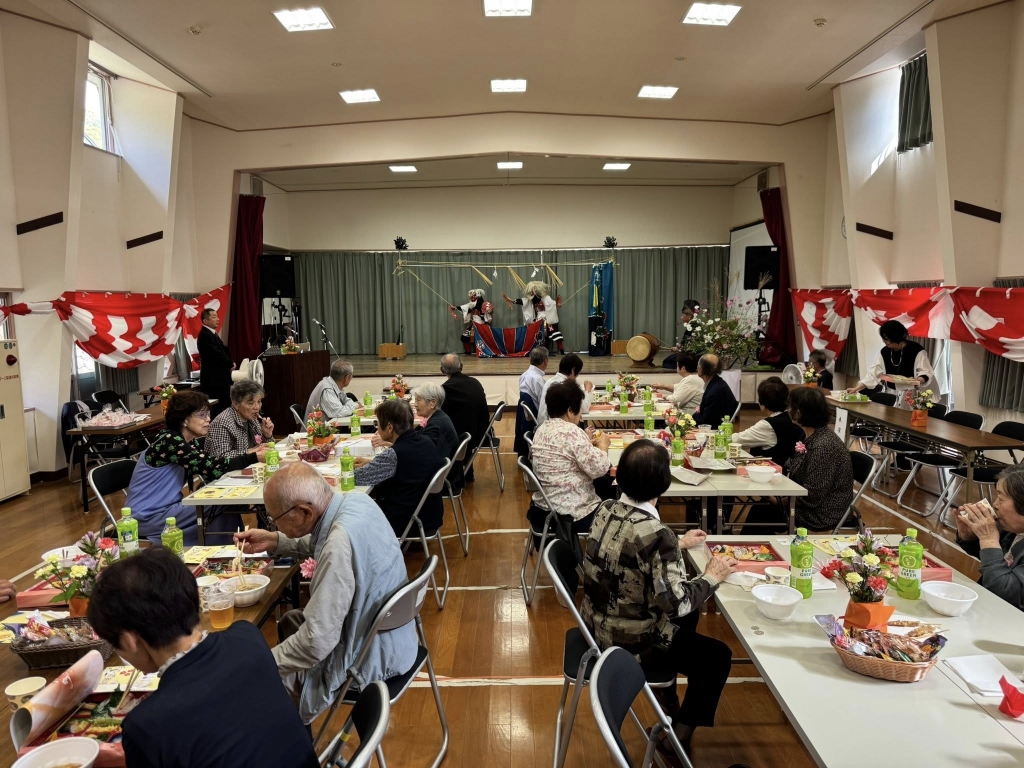 11時から開催された「蚊家地区にこにこ敬老まつり」に遅れて出席しました。ご開催おめでとうございます。