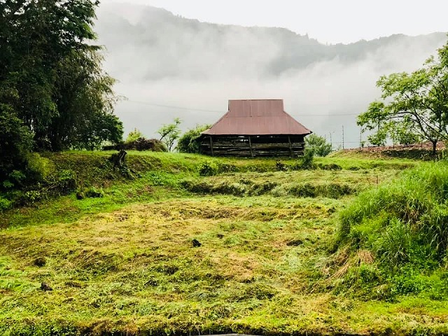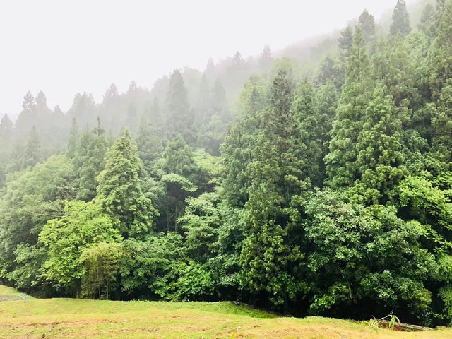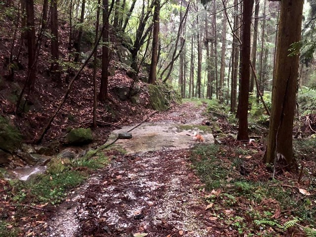 黙って歩く山の道。みんな雨の中だなぁ。本日もよろしくお願いします。頑張りましょう。