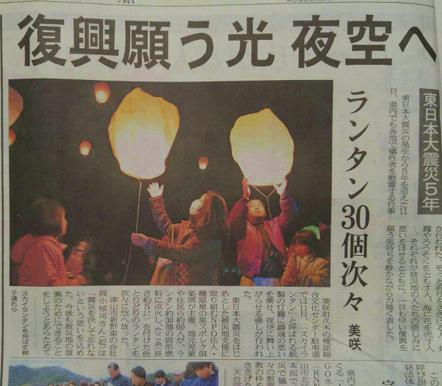 新聞が「東日本大震災5年」を伝えている。岡山県でも各地で犠牲者を慰霊する行事が行われたと。