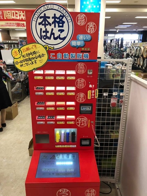 隣県で、「印鑑自動製販機」なるものを発見しました。