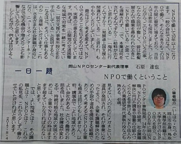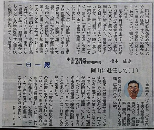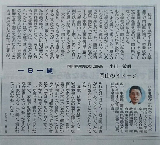 県議会棟に入りました。今日は、審議会と対県要望です。ところで、知り合いの新聞記事を読むのは楽しいものですね。山陽新聞夕刊です。
