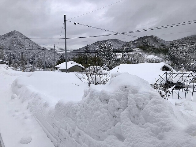 今日は新見市内で活動しました。長靴がなくては歩けません。新見市千屋です。屋根の雪の厚みが新見市街地とは違います。皆様、ありがとうございました。