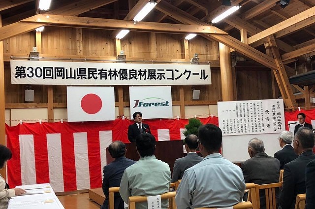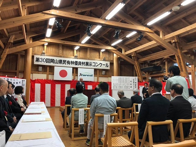 11時から、「岡山県森林組合連合会林業研修センター大会議室」で開催された『第30回岡山県民有林優良展示コンクール記念式典』に出席しました。