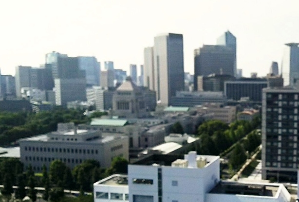 東京の朝は、地方議員の宿「全国町村会館」であります。国会議事堂が見えております。窓越しの写真であります。