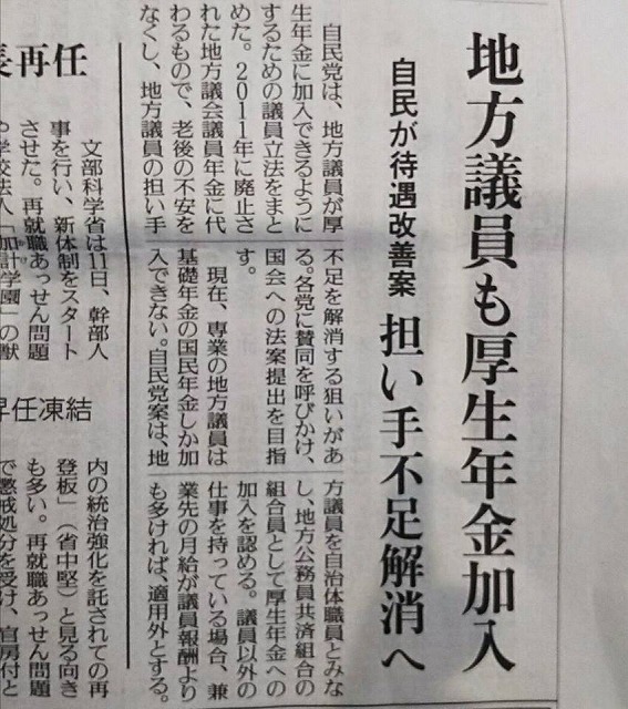 地方議員の担い手不足が大きな問題となっている。その一因であると思う。
